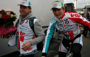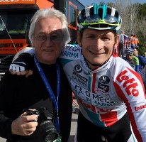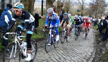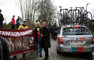 Gut in Kuurne aufgeschlagen machten wir uns auf den Weg in das Fahrerlager und wurden dort von den beiden Protagonisten freudig begrüßt. Nach einem Phototermin ging es dann nach Kluisbergen zum Kwaremont. Dort wartet auf die Fahrer ein 2,2 Kilometer langer Anstieg mit Durchschnittlich 4,2 und in der Spitze 10 Prozent. Eigentlich keine Zahlen zum fürchten... aber... die Strecke wird hier zum Nadelöhr und der Belag ist zum größten Teil Kopfsteinpflaster welches sich mit den Jahren so verlegt hat, dass man sogar mit breiter MTB Bereifung so seine Probleme hat