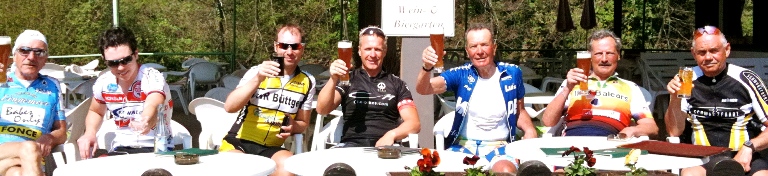 gleißender Sonnenschein, mehr als 40 Fahrer/innen, was kann das nur sein? Schmitter Ausfahrt und danach ließ es sich André nicht nehmen uns einen Auszugeben.... hierbei wurden auch wieder genesende Fahrer begrüßt, Tom auf dem Rad und Michael noch auf Krücken. Pulli ließ es sich nicht nehmen trotz Jetlag und auch Jörgs M. Niederlage, ließ sich bei einem guten Kölsch ganz anders an. Ein Danke Schön an den Spender.....