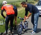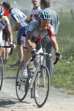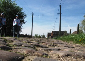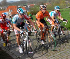 hocharbeiten. Ein ähnliches Schicksal erlebte Pascal an der Muur von Geradsbergen, als es kurz vorm Cafe zum Stillstand kam. Geistesgegenwärtig wurde er von einem Zuschauer wie beim Zeitfahren am Sattel festgehalten bis es weiterging, so dass ihm das Ausklicken und Schieben erspart blieb. Erwähnt sei übrigens das allgemeine Zuschauerinteresse: nicht nur an der Kappelmuur waren wahrscheinlich mehr Zuschauer vorhanden als in Deutschland bei einem prominent besetzten Kriterium. Traurig!