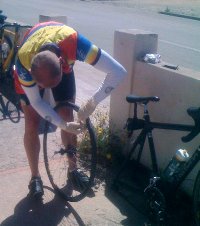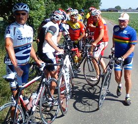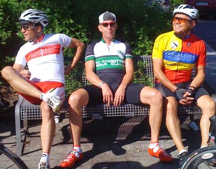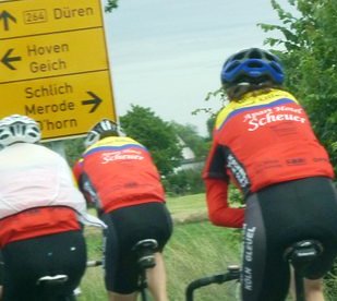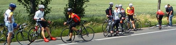 Protagonisten. Hinter Nörvenich gab es bei Rene Differenzen zw. seiner Kraft und der Materialgüte seiner Pedale. Es kam zum Bruch. Dabei landeten seine Weichteile unsanft auf dem Rahmen. Kurz danach wollte uns ein Autofahrer dann auch noch lieber im Graben sehen als auf der Fahrbahn.