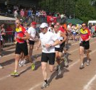 Bei den Schmitter Jungs waren die Vorzeichen etwas anders. Teilweise aus Übermut waren diese alle für den 10 Kilometer Toplauf gemeldet. Da kam die Ansage vom Veranstalter. Ziel bei diesem Lauf war es die 10 Kilometer unter 50 Minuten abzuspulen. Für unseren Ralf kein Problem. Vom Start weg ward dieser nicht mehr zu sehen und erreichte das Ziel in einer Zeit von knapp über 40 Minuten. Der Präses kämpfte schon nach einer Runde von drei zu absolvierenden mit einem riesigen inneren Schweinehund und wollte sich schon der Entdeckung der Langsamkeit hingeben. Doch Jörg und Detlef Magnus (von den Kometen) entschieden sich dazu, dass wir letztlich als Gruppe zusammenliefen. Es gelang ihnen dann mit ständig motivierenden Ansagen uns drei in einer Zeit von unter 50 Minuten Richtung Ziel zu treiben. Rundum eine klasse Veranstaltung, die durch Führungsfahrer aus unseren Reihen, Mike, Robert und Alex das i-Tüpfelchen erfuhr. Grüße Detlef