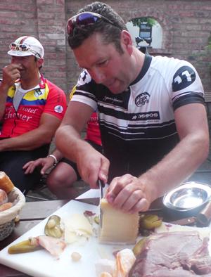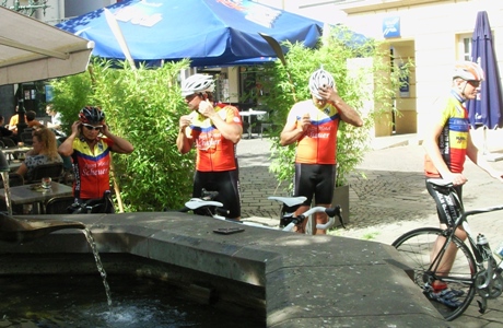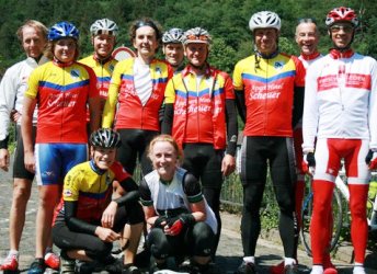 Fakt ist, dass die Lachmuskulatur mitunter anspruchsvollere Umfänge zu bewältigen hatte als die Beinmuskulatur. Und das lag nicht an der Länge der beiden absolvierten Touren über 80 (mit Regenschauern) und 120 (mit Sonnenschauern satt) Kilometern. Dabei hatten wir die Touren topografisch so angelegt um evtl. auf die Gebrüder Schleck zu treffen... aber irgendwie kam diese Fusion nicht zu Stande. Vielleicht sind die beiden just an diesem Wochenende eher flach gefahren ;-).