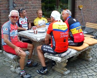 doch Rückenwind. Klar kleiner Zwischensprint in Wissersheim der von Kometen und Schmittern bestimmt wurde, nahmen da welche ihre Auszeit oder war das alles nur Grundlage? Bei Gerti wurde wiederum Resümee gezogen, wat war dat doch ne schöne Ausfahrt!