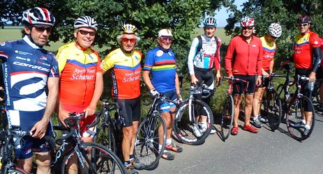 Auch am Sonntag, hier mal mehr Lück (24) als Samstags, ging es verkehrt herum auf die Runde. In Embken hatten einige die Nase noch nicht voll und fuhren in den Sonnenhimmel hinauf. Die anderen fuhren mal über Stockheim entspannt zurück.
