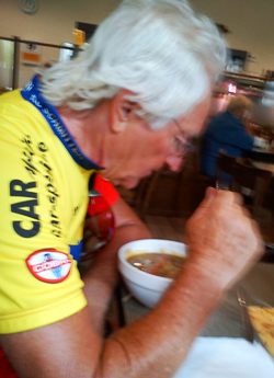 Zwischendurch Marschverpflegung, wobei kaum ein Unterschied zwischen Kaffee und Tomatensuppe festzustellen war.