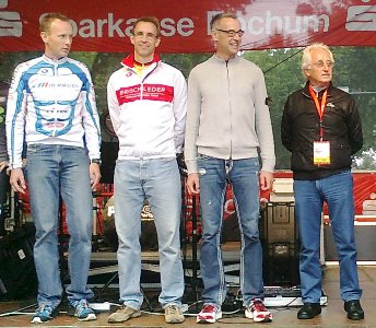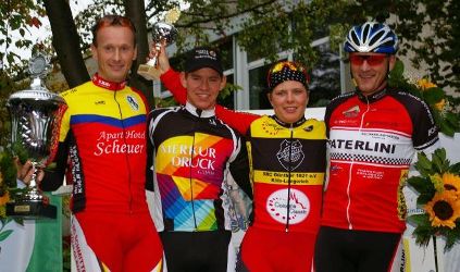 Fangen Sätze mit „eigentlich“ an, werden Sachverhalte schon zu Beginn relativiert. Hierzu bestand beim SparkassenGiro keine Veranlassung. Der RC Schmitter stellte nicht nur den Gesamtsieger des 50 km Rennens, sondern auch die Gewinner sämtlicher Altersklassen. Mit Ingo Berendt (Gesamtsieger und AK 1) Peter Eberhart (Deutscher Sparkassenmeister und AK 2) Bernd Frischleder (AK 3) und unser Senior Martin Scheuer (AK 4). Mit Inge Babel stellten wir auch die 3.-Platzierte des Frauenrennens. Besonders schön war Martin mit seinen 74 Jahren ganz schüchtern auf dem Podium zu sehen. Ich glaube, er traute dem Ganzen nicht so recht. Eine ganz starke Leistung!!!