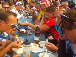 Nachdem das Feld die Zuschauer passiert hatte, wollten wir wieder nach Kuurne um letztlich den Zieleinlauf zu sehen. Leider war ein Schmitter Wagen nicht schnell genug und wir mussten die Fahrer passieren lassen. Wir hatten keine Chance mehr rechtzeitig dort zu sein und machten uns so auf den Heimweg. Martin mit seiner Gruppe hatte da mehr Fortune. Er schaffte es rechtzeitig mit seiner Gruppe zum Ziel. Dort sprintete Andre dann auf einen hervorragenden dritten Platz. Um kurz nach sieben am Abend traf der erste Tross wieder in Hürth ein. Es war ein anstrengender aber auch schöner Tag. Vielleicht gibt ja eine Wiederholung bei einem weiteren Klassiker nah an unseren Gefilden.