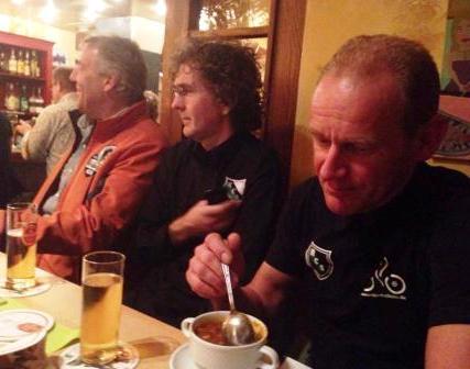 Stephan mal den Mantel in die Hand genommen und : " Willi, der ist aber ganz schön dünn" " Nö, der ist doch erst dieses Jahr neu draufgekommen" "Ja wann denn" " Na so Mai/Juni" "WILLIIIIIIII...." Steinchen dann auch gefunden, nur hatte man dann keinen Schlauch.... tja abholen war angesagt. Stephan mit Verspätung der Meute hinterher und wurde auch noch ab Berrenrath was feucht, klar die berühmten dree Droppe.