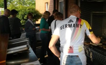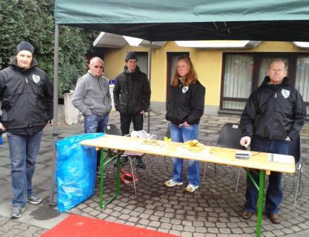 Die Nacht war kurz, es hilft nix kurz vor Achte hieß es für die Schmitter Helfer aufstehen. Der/die eine oder andere brauchte noch so ein Bonbon fürs Köpfchen und schon wurde in Gymnich und in Bliesheim eifrig aufgebaut, Bananen geschnitten und Tee aufbereitet, auf das der Ansturm kommen konnte...