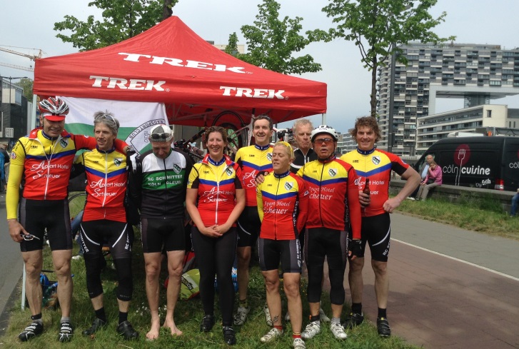 Weiter möchten unseren Mitgliedern auch für 2014 anbieten bei Rund um Köln etwas kostengünstiger zu starten. Der Verein unterstützt jede/n Teilnehmerin/Teilnehmer mit EUR 25,00 zur Startgebühr. Bitte meldet Euch bis zum 22.02.2014 unter folgenden Adressen an: nc-zoskehe@netcologne.de oder info@informatikbreuer.de an. Gleichzeitig überweist ihr bitte die Differenz zw. der aktuellen Stargebühr und unserer Unterstützung auf unser Vereinskonto. Wir melden Euch dann gemeinsam an. Aber Achtung! Wir melden auch nur diejenigen an, welche uns die anteilige Stargebühr bis zum 22.02.2014 auch überwiesen haben. Wenn sich aus euren Reihen ein Team bildet (4 Fahrer/innen auch Mixed) wäre das auch schön. Stimmt Euch ab.