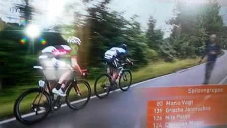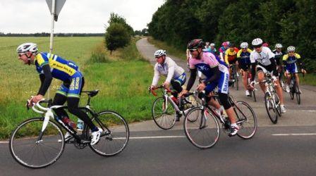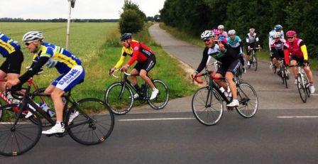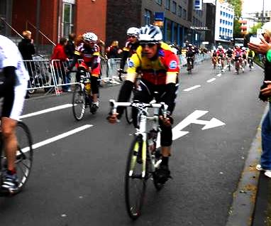 Toll da nützte alles fluchen und brüllen nix... gedreht und versucht, der jetzt richtig aufdrehenden Spitzengruppe wieder ranzufahren... leicht abschüssig Tempo 55-60 ins Städchen hinein, wir nur noch zu dritt, vorne flogen viere raus, die uns aber nix nützen, immer noch einen Abstand von ca. 100m. Wenn man dann sehen kann wie die sich da vorne umdrehen und versuchen nochmal aufzudrehen, poh Adrenalin pur... noch 20m Abstand, rechts Kurve, Kreisel 10m nur noch... und tja da kam sie die 2.Steigung kurz vor Start/Ziel, die aus dem Sattel und wieder waren se fott, so ne dress. Die anderen Zwei konnten denen noch etwas folgen für mich war Ende im Gelände, fluchend fuhr ich über Start/Ziel um meine 2 Runde zu fahren... da vorne fahren se und hinter mir weit und breit wirklich nix, watt nu?