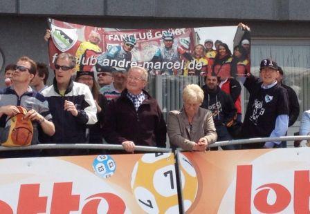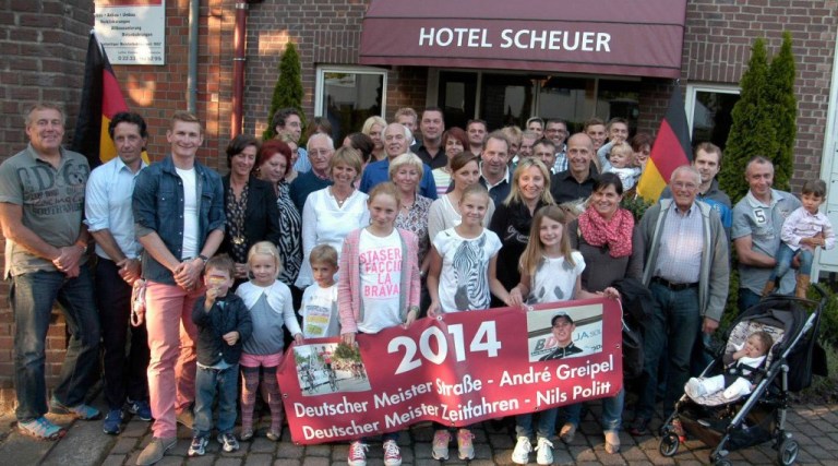 Chapeau! Alle waren sie gekommen, um heute morgen an der Charity-Radtour für Martin Scheuer in Hürth teilzunehmen. Allen voran die Promis wie der aktuelle Deutsche Meister André Greipel und sein Anfahrer Marcel Sieberg, Ex-Profi Marcel Wüst, Zeitfahrweltmeister Bert Grabsch, die Kölner Radsportlegende Rolf Wolfshol, Jens Heppner und viele, viele andere. Und das bei Wetter, bei dem man nicht einmal seinen Hund vor die Tür Jagd... Großes Kino für einen der größten Förderer des Radsports in der Region! Mehr als 100 Rennradfahrer/innen ließen es sich nicht nehmen für Martin eine Ehrenrunde durch die Hürther Gefilde zu drehen, nach der kurzen Runde war das gesellige Beisammen sein mit Kölsch, Ähtzesupp und lecker Bockwoosch Ehrensache!