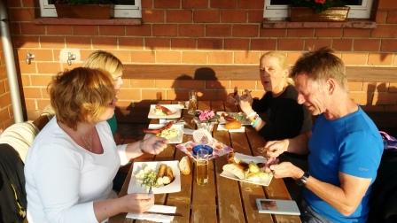Im Burghof, in geselliger Runde, dann das eine oder andere Ründchen auf Martin.