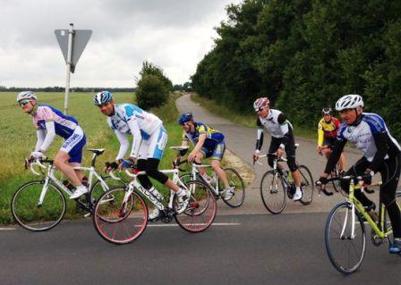 Zurück über die Schnellfahrstrecke gen Gladbach ließ es Harald richtig brennen, auf das Sabinchen sich einen in den Schuh fuhr... da wurden es einige weniger. Schön ließen es die Sechse, die übrig waren, über Gladbach bis Wissersheim richtig krachen... zwischendurch wurde auch mal schön gekreiselt.. Matthes und Fixe Hein wurde von der nachfolgenden Gruppe gönnerhaft aufgenommen.