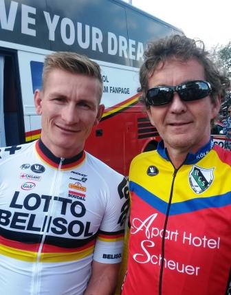 Für interessierte Jungen und Mädchen ab Jahre 10 Jahre bietet hier André Greipel nach der Ausfahrt einmal an, ein paar Runde auf einem Rennrad der passenden Größe zu drehen (hierfür bitte Helm und Turnschuhe mitbringen) Diese Aktion startet so gegen 12:30 Uhr und findet auf der Innungsstr. in Hürth Gleuel statt.