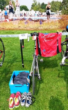 Zwar kam er wie immer nicht als Erster aus dem Schwimmbad, das Kraulen klappte ganz gut, aber auch nicht als Letzter. Auf der Rennradstrecke schnappte er sich die zwei vor ihm liegenden und gab die Führung auch nicht mehr beim Laufen aus den Händen bzw. ab.