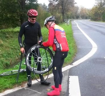 Bei einem Defekt am Reifen hast Du nach einem Mechaniker gerufen, der namentlich nicht bei der Gruppe war. Noch schlimmer war aber für Dich, dass diese unfreiwilligen Pausen den ganzen Schnitt ‚kaputt‘ machten.