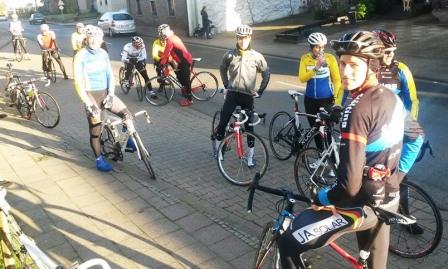 Der sportliche Leiter gab das Startzeichen und ca. 15 Unentwegte machten sich auf. Knapsack drehten einige bei... und hinter Gymnich waren es nur noch Sieben, Wissersheim Fünfe... über Nörvenich links Richtung Gladbach... einer meinte bei Vettweiß würde es heller, aber das war ein Trugschluss, na jetzt war das aber auch egal. Etwas nass aber mit Rückenwind brauste man zurück.