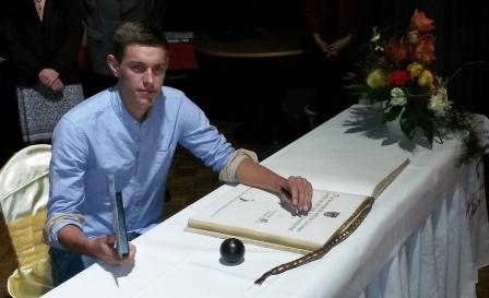 Nils Politt, beim eintragen in das Güldene Buch der Stadt Hürth