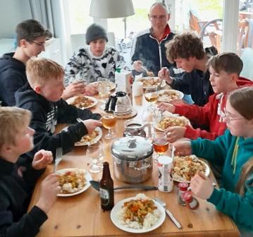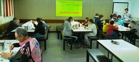 23.02.2023 Freitag mit 15 Kis und Youngster pünktlich ging es los, etwas frisch ließ uns aber nicht verzagen. Auch der der starke Gegenwind hinter Lechenich spielte so gut wie keine Rolle, fast... flugs erreichte man Satzvey, wo uns schon Rheinbacher und weitere erwarteten... die "Kleinen" und Gepäck ins Auto gepackt, die Anderen nun nur noch hoch... kurz nach fünfe ereichten alle das Jugendgästehaus in Nettersheim, war da oben aber schon ganz schön frisch.... schnell wurden Betten gebaut, geduscht, und das Gepäck verstaut. 18.00 Uhr auf zum Abendessen, Ratzfatz waren die Würstchen und der Kartoffelsalat alle aber es wurden weitere Stullen mit Belag verschlungen...