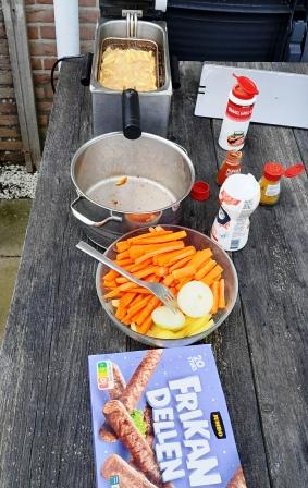Aber dann hieß es Seitenwind und Gegenwind, so 8-9..., ab Philippinen dann auch so richtig schöner Sprühregen... hier mal kurz Pavees antesten, die letzten Riegel verteilen und weiter... wie weit noch tönte es von hinten, ja nur noch 30km... das zog sich aber alle bestanden die Charakterprüfung, was für ein Sauwetter bei über 80km. Ankunft und das Kuchen und Pannekokenbuffet war eröffnet und auch die letzten Brötchen verschwanden ganz schnell. Duschen und zwei Waschmaschinen später konnte man sich beim putzen der Rädchen schön wieder regenerieren... zweie wieder zum Schnibbeln und kochen, die weiteren versuchten das Tretboot wieder flott zu bekommen, was schlussendlich auch geschah... Aber jetzt hiess es Essen fassen Reis mit Pute und einer riesigen gekochten Gemüseallerlei, ratzfatz war alles fott aber alle satt, puh Glück gehabt...