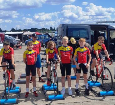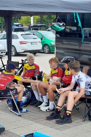Erstmal trinken und Essen, und schon stand das Mannschaftszeitfahren auf dem Plan ... unsere 3 U13, leider ohne Clara, am Start und was für tolle 2 Runden 3.Platz hinter Team Berlin und Mecklenburg...