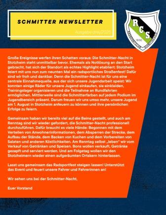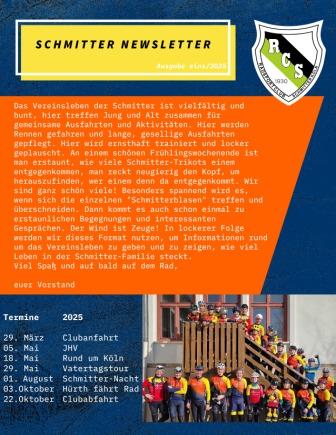 Trainingslager Nettersheim 07.-09.03.2025 Clubanfahrt 29.03.2025 Trainingslager Holliland 22.-27.03.2025 Schmitter Grillen 20.06.2025 Schmitter Nacht 01.08.2025 Hürth fährt Rad 03.10.2025 Clubabfahrt 25.10.2025